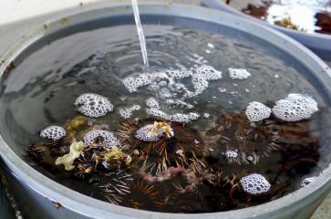 - Élevage d’oursins, Tripneustes gratilla, réalisé dans le cadre du living lab AMWI, au Centre Ifremer du Pacifique © Guillaume Marchand