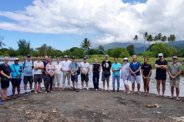 - Photo de groupe des personnes présentes lors de la visite du site d’Atimaono dans le cadre du living lab AMWI © Guillaume Marchand