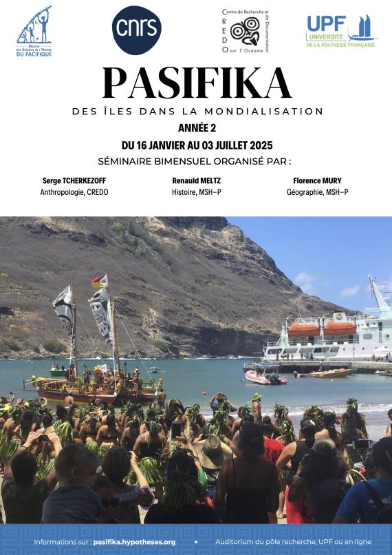 A l'initiative de Renaud MELTZ et Serge TCHERKEZOFF, l'objectif de ce séminaire est de penser la mondialisation et la modernisation, sur tout l’empan de la période contemporaine, depuis les îles d’Océanie. À l’articulation de l’histoire et de l’anthropologie, nous proposons de regarder le monde depuis le Pacifique, plutôt que de regarder le Pacifique de l’extérieur.